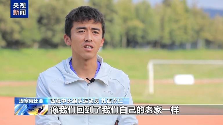 西藏中长跑队运动员 扎西次仁:这里的人比较热情,我们像回到了老家一样。我们那里的人比较热情好客,这里也是。