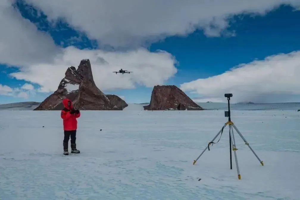 褚馨德在南极格罗夫山梅森峰执行无人机航测任务