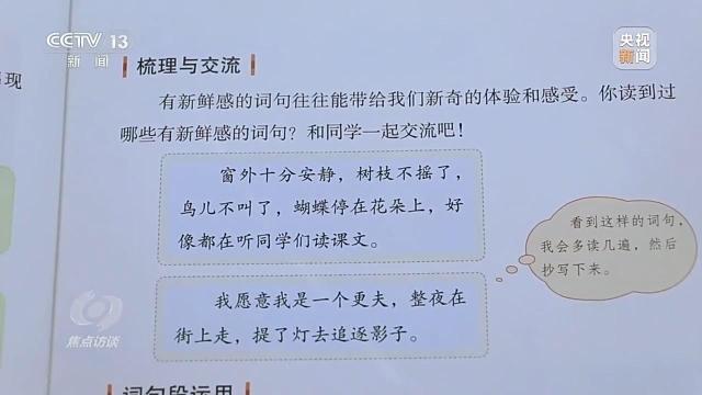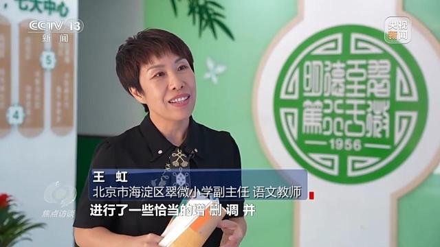 北京市海淀区翠微小学副主任、语文教师 王虹:拿到教材,我们心里特别踏实,我们发现这个教材进行了一些恰当的增、删、调、并。一年级上学期识字量上原来是300个,现在280个,还有一些对学生理解起来有一些难度的课文,也进行了删减或者调整。