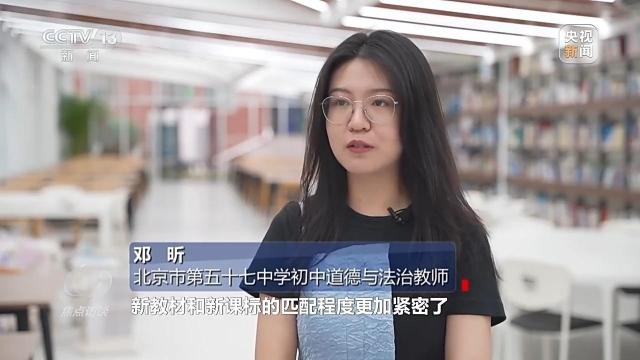 北京市第五十七中学初中道德与法治教师 邓昕:新教材和新课标的匹配程度更加紧密了,突出了核心素养里的重视实践这个环节,让学生们从理论课堂走到社会实践。