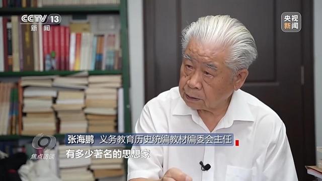 义务教育历史统编教材编委会主任 张海鹏:讲我们中国历史上每一代有多少著名的思想家,有多少著名的政治家、军事家、战略家、科学家,对人类有贡献的发明创造、文学艺术。这就是告诉我们,中华的文化是优秀的,是值得我们热爱的。