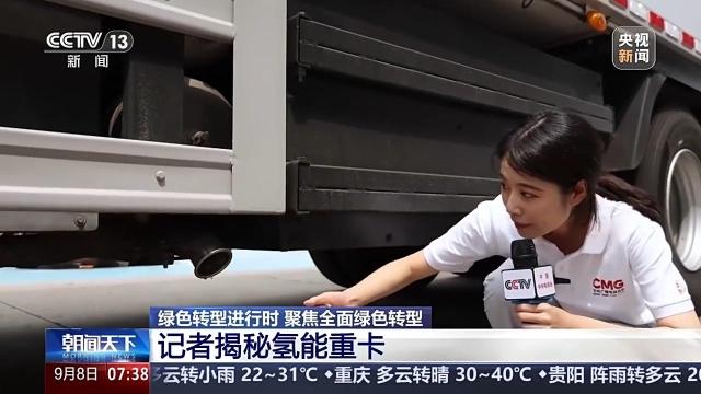 总台央视记者 张丛婧:这个氢能重卡最大的不同就在于,您看在车头和货箱之间,有一个这样的大箱子,里面装的就是氢燃料。