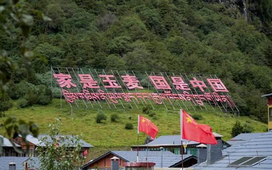 图为玉麦乡“家是玉麦,国是中国”标语(9月5日摄)。新华网发 文翔宇 摄
