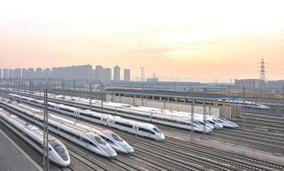 在陕西西安,一列列动车组列车整装待发迎接旅客。王曙天摄(影像中国)