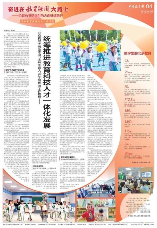今天,“奋进在教育强国大路上——沿着总书记指引的方向砥砺前行”专栏之“各地教育成就巡礼”系列,通过一个视频、一组大图、一篇报道介绍北京如何构建大思政牵引、全链条育人、产学研协同工作格局——