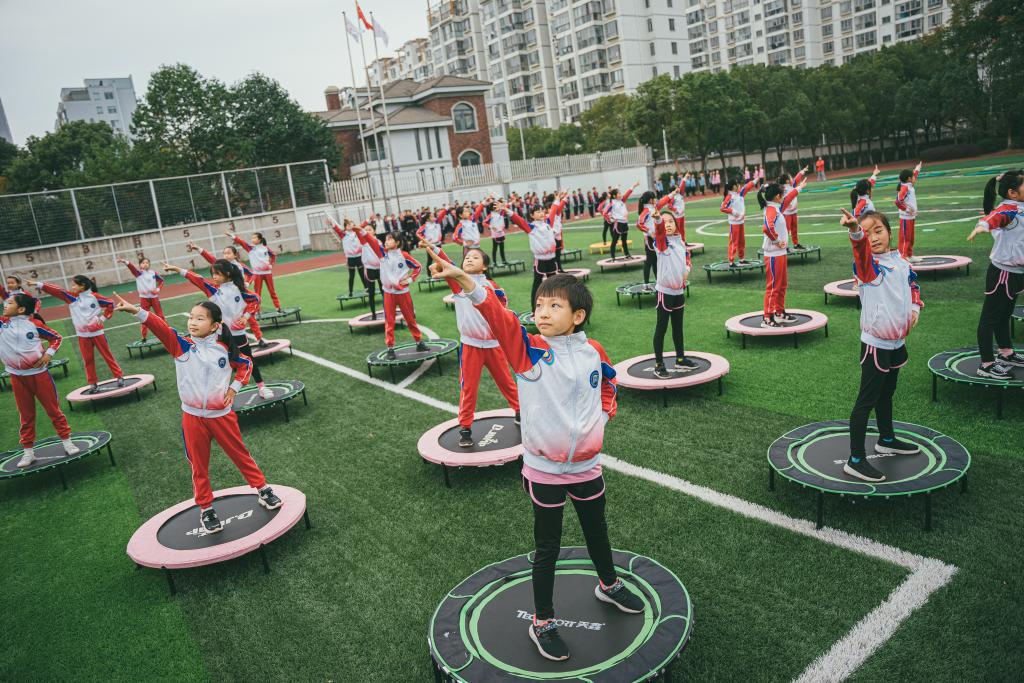 图为苏州市沧浪新城第一实验小学校的体育课