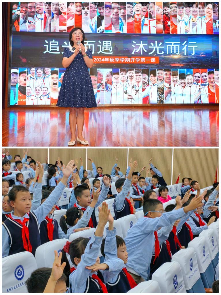 在昆明市盘龙小学教育集团的开学第一课上,党委书记高辉带着大家重温奥运燃情时刻,让孩子们思考怎样成为新时代好少年。三年级的唐子尧说:“当看到男子4×100米混合泳接力决赛,中国队战胜美国队获得金牌,我激动得都哭了。”