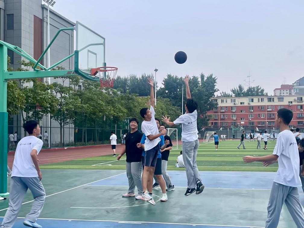 北京市第一六一中学是率先探索实施“课间15分钟”的学校之一。下课铃响,就有学生抱着篮球跑出教室,“抄近路”奔向球场。“课间延长就像比赛加时,让我能多进几个球。”高二学生范雨森说。
