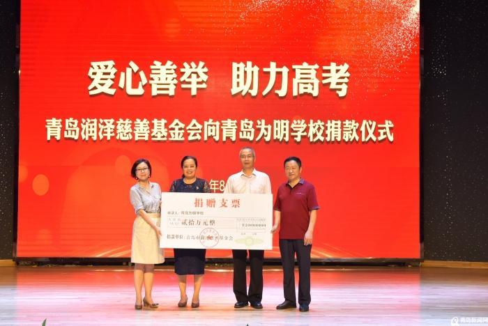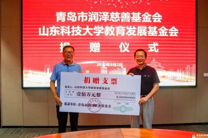 (2020年9月2日青岛润泽慈善基金会向山东科技大学教育发展基金会捐赠100万元)