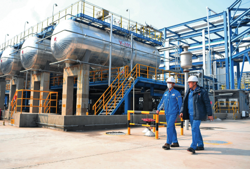 我国西部重要的炼化生产基地——中国石油兰州石化公司坚持把科技 创新作为推动企业发展的核心动力,助力老炼化基地不断释放高质量发展 潜能。图为兰州石化公司橡胶运行部的生产装置(2023 年 2 月 22 日摄) 陈斌 摄 / 本刊