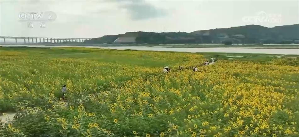 眼下正是油葵绽放的季节,在黄河三门峡库区滩涂上,千亩油葵花竞相绽放,一排排、一方方,迎风招展,形成一片金色的花海。金灿灿的葵花、宽阔的河面、岸边的青山以及跨黄河大桥互相映衬,勾勒出一道明媚的风景线。游人穿行花海中间,打卡拍照,享受凉爽秋风,欣赏壮美山河。据了解,油葵整个花期可持续1个半月。待深秋油葵花盘成熟之际,游客还可采摘油葵,品尝葵花籽的清香。