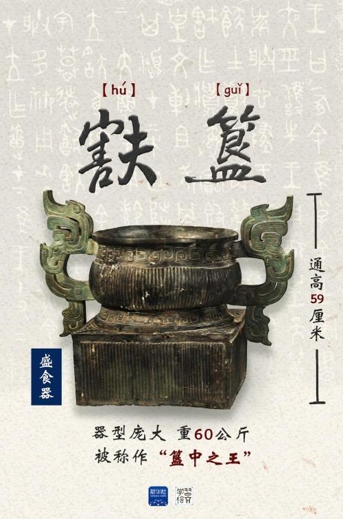 现展出于宝鸡青铜器博物院的?簋号称“簋中之王”。圆形簋身与方形底座相连,簋内铸有铭文124字,由此得知它是西周第十位天子周厉王姬?为祭祀先祖、祈神降福而作。