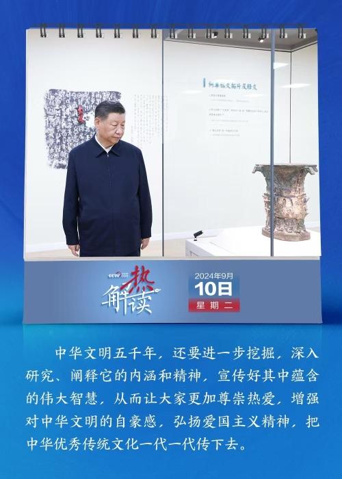此次在宝鸡青铜器博物院,总书记特别嘱托:“中华文明五千年,还要进一步挖掘,深入研究、阐释它的内涵和精神,宣传好其中蕴含的伟大智慧,从而让大家更加尊崇热爱,增强对中华文明的自豪感,弘扬爱国主义精神,把中华优秀传统文化一代一代传下去。”