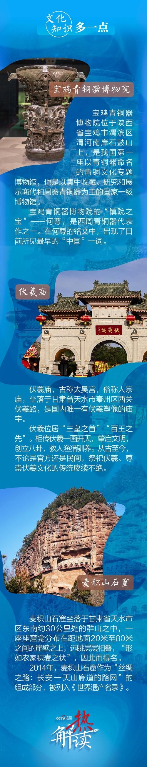 9月10日下午至11日上午,习近平总书记先后来到陕西省宝鸡市和甘肃省天水市考察调研。此次陕甘行中,总书记专门考察了三处文化地标。