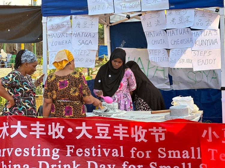 唐丽霞:我们发现在两个村子里面,有两个农户开始做豆浆来销售,开个小豆浆店,不仅卖豆浆,还卖午餐和豆制品,大家就非常高兴。今年我们驻坦桑尼亚大使陈明健也去看过这些店,提出“ China drink”这个概念在当地很受欢迎。