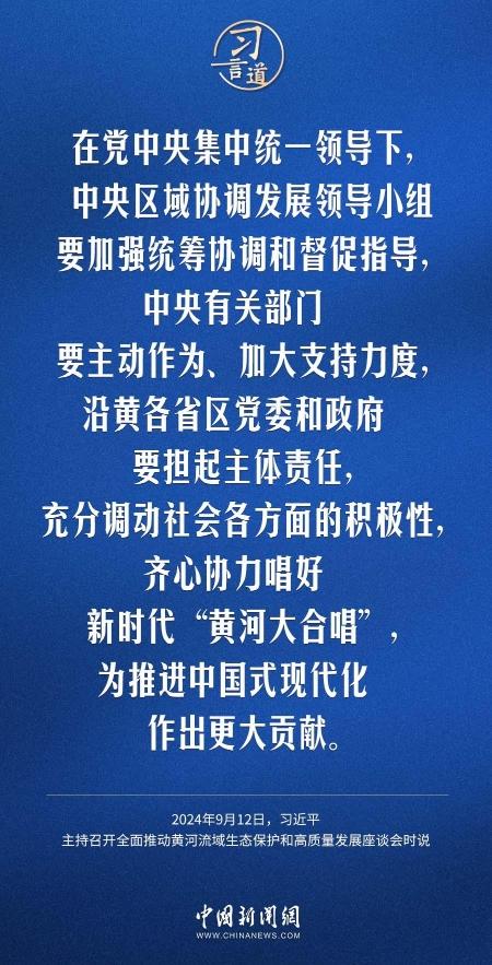 中共中央总书记、国家主席、中央军委主席习近平12日在甘肃省兰州市主持召开全面推动黄河流域生态保护和高质量发展座谈会并发表重要讲话。习近平指出——