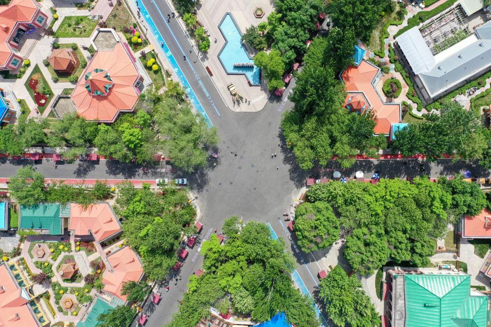 从空中俯瞰六星街,映入眼帘的是一片绿树成荫、红瓦蓝墙的正六边形街巷。六星街始建于20世纪30年代,街巷内居住着汉族、维吾尔族、哈萨克族等13个民族的群众,是新疆多民族和谐共处、多元文化交织交融的一个缩影。