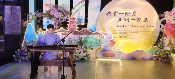 江海觅知音,古琴庆中秋。非遗梅庵古琴传人拨动琴弦,为大家带来了古琴《捣衣》、《平沙落雁》等经典曲目,经典重现,余音缭绕,吸引中外友人仔细欣赏,纷纷上台体验。俄罗斯留学生奥佳丽用中文为大家带来歌曲《但愿人长久》,用自己的方式演绎对中华民族传统音乐的理解。以音为桥,以乐通心,音乐之美沟通无国界,音乐交流美人之美,美美与共。