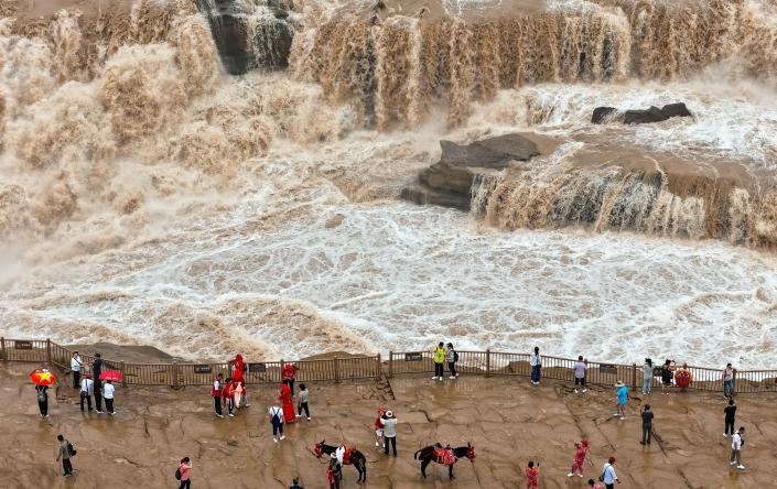 △9月9日,游客在黄河壶口瀑布景区游览。