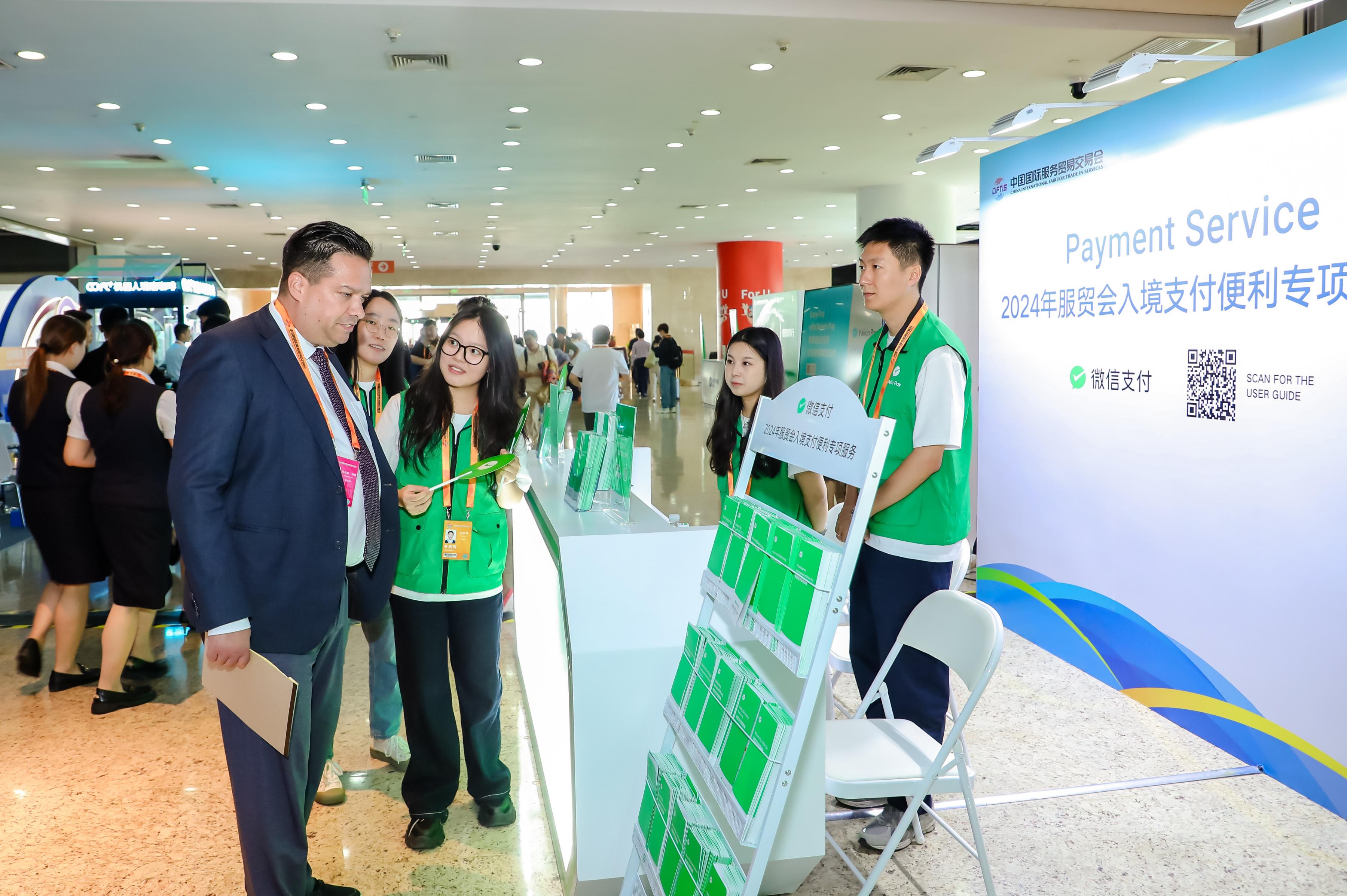 “目前,我们有蒙语、俄语、韩语、日语、马来西亚语、德语、老挝语等 12种语言的入境支付指引。”在2024年中国国际服务贸易交易会(以下简称“服贸会”)首次推出的入境支付便利专项服务台前,“绿马甲”志愿者正忙着向来问询的外籍参展商介绍。外卡内绑、移动支付等便利化措施,成为外籍人士在服贸会的新体验。