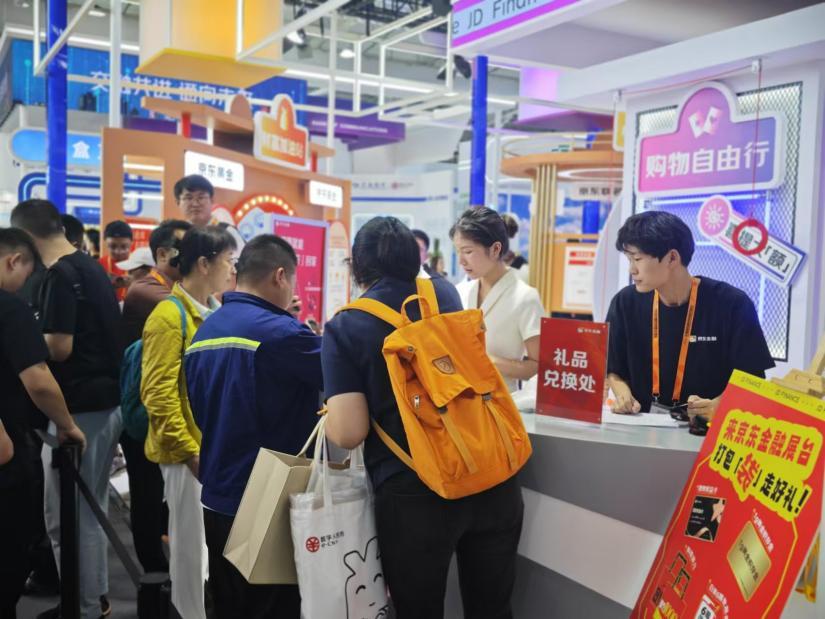 观众在金融服务展区体验数字人民币购物。人民网记者 黄盛摄