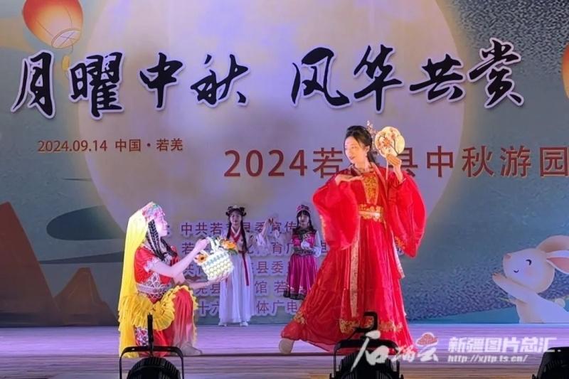 9月14日,“月曜中秋·风华共赏”2024若羌县中秋游园会上,西部计划志愿者带来舞蹈《广寒宫》。图/自治区团委提供