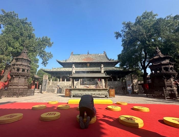 秋风朗朗,天高云阔。中条山下,关公故里,绿树掩映,古韵悠长。在山西省运城市盐湖区解州镇的解州关帝庙内,游客、信众在大殿外敛声屏气,伏身跪拜,虔诚叩首,构成一幅文脉延绵的画卷。