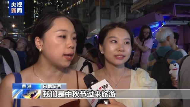 内地游客:我们是中秋节过来旅游,得知这边有中秋的庆祝活动,所以就很想过来体验一下,感受一下这边中秋节的庆祝方式跟我们西安那边有什么不同。