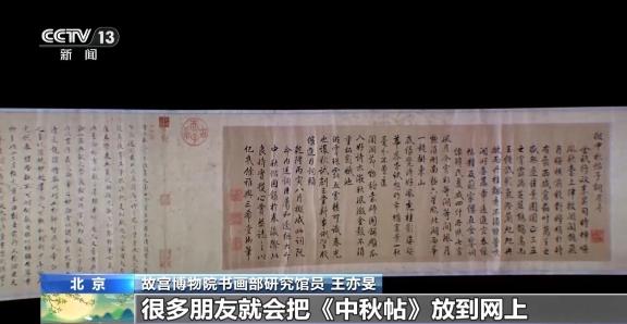 故宫博物院书画部研究馆员 王亦旻:中间这一块是核心的,就是中秋帖的原帖。