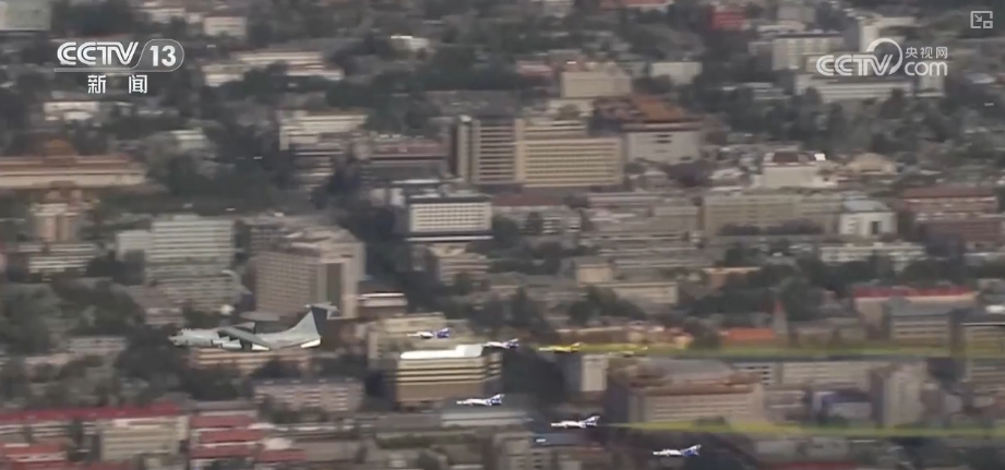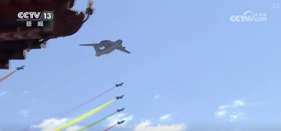 率先飞过天安门上空的是多机编队的领队梯队,带队长机是空警2000预警机,“蓝天娇子”携雷霆之势展空中雄姿。