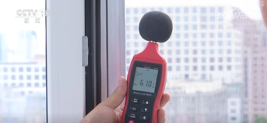 记者来到工地附近的居民家里,已听不到很大的施工噪声。开着窗户时,声级计上显示的声音只有60多分贝,而这还混杂了周围车辆行驶的声音。