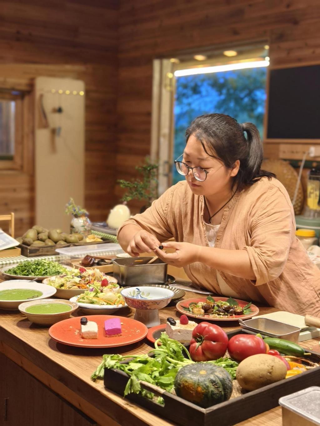 青年创客封玲在南瓜家森林厨房制作菜品。受访者供图