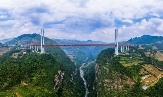 2016年底,杭瑞高速北盘江大桥建成通车。天堑变通途,其桥面至江面565.4米的垂直高度也将世界第一高桥的纪录镌刻在贵州大地之上。