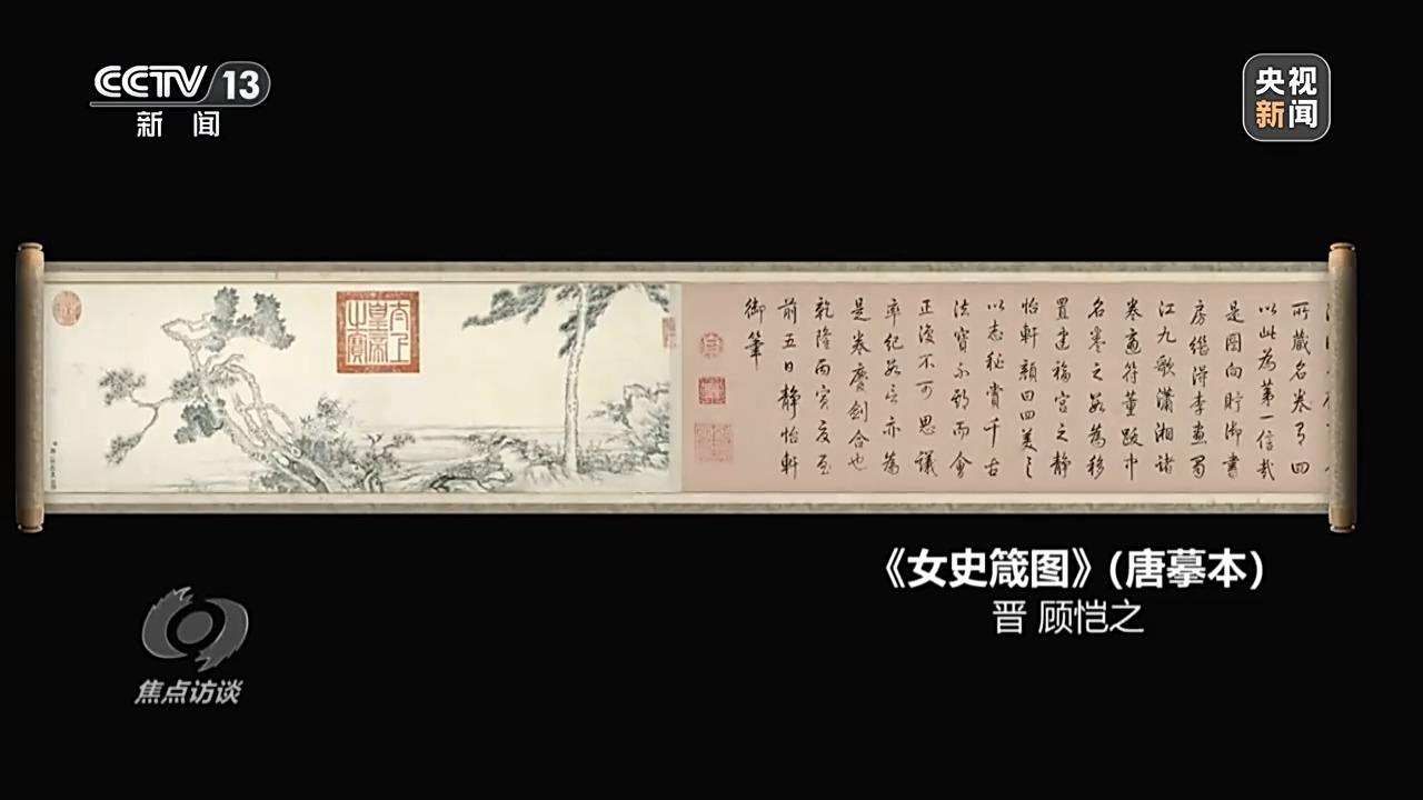 东晋著名画家顾恺之的《女史箴图》原作早已遗失,目前已知最早的唐摹本,被分段收藏在大英博物馆中。卷尾清代画家邹一桂的《松竹石泉图》也因各种原因与前卷分离。
