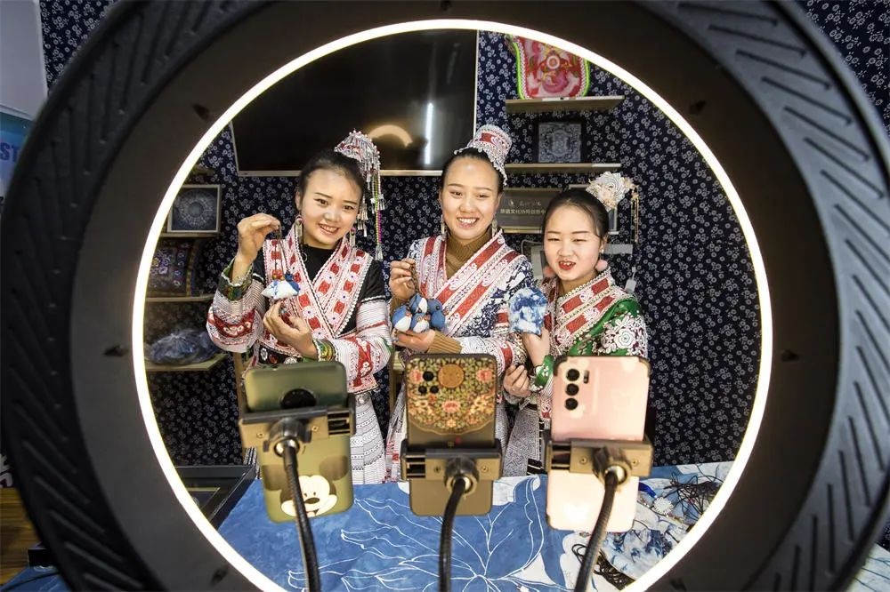 杨文丽:刚开始的时候也是很害羞,不知道怎么去跟网友们去交流,后来就是我的表妹,她带着我,用我们的苗语,我们当地的贵州话,还有就是普通话这3种语言都会在直播间里面轮流地说。直播带货比线下效果好很多,在线下,一年营业额也就十万。做了直播带货以后,前年一场直播,最高的时候一场就八万多块钱,将近9万。2个小时的时间是之前一年的营业收入。
