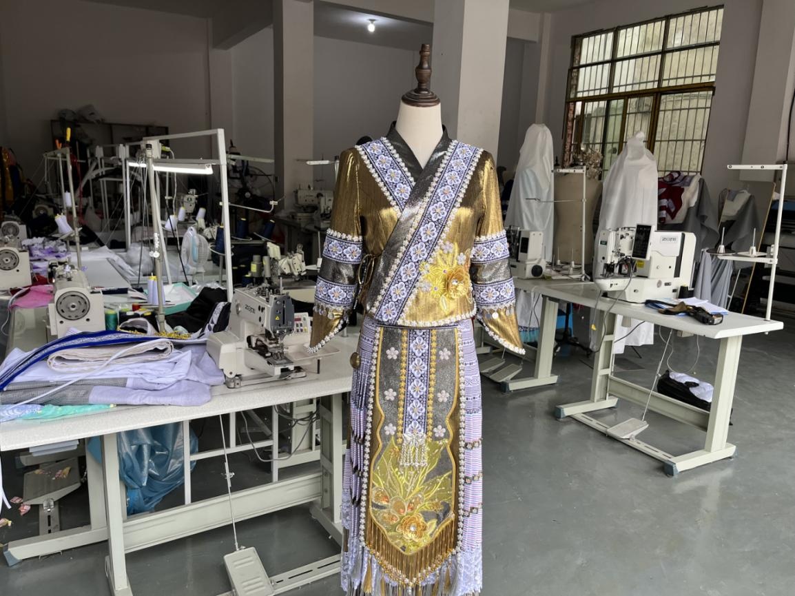 开播三年多,她在线上卖出近5000套服装,2023年的营业额达到了200多万元。公司也从最初的5个人的团队、两台刺绣机,发展到了今天的63名员工、二十多台机器设备。