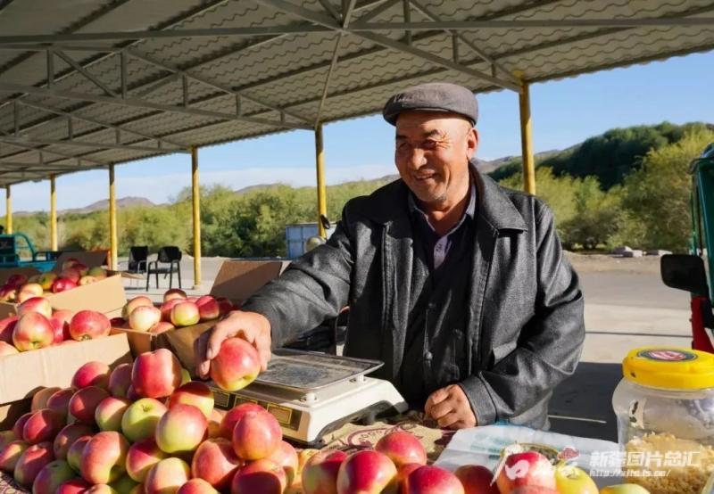 9月18日,哈密市伊吾县吐葫芦乡伊河苑社区村民卡德尔·吐乎逊在市场上销售苹果。他有4亩果园,预计今年收入3万多元。今年,伊河苑社区600余亩苹果喜获丰收。高志华摄
