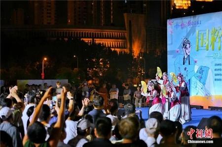 6月8日晚,“‘桥’见海河,邂逅浪漫”——桥边音乐汇第二季“国粹芳华”京剧专场演出在天津海河畔举行,吸引了许多市民及游客感受国粹魅力。中新社记者 佟郁 摄