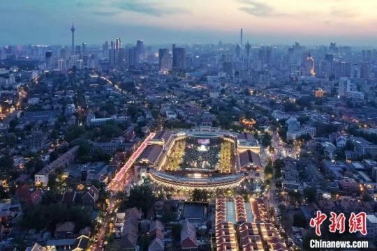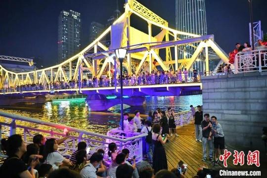 8月2日晚,由天津市商务局、天津市文化和旅游局、天津市体育局共同主办的第五届天津夜生活节启幕。图为民众在启动仪式上观看文艺演出。中新社记者 佟郁 摄