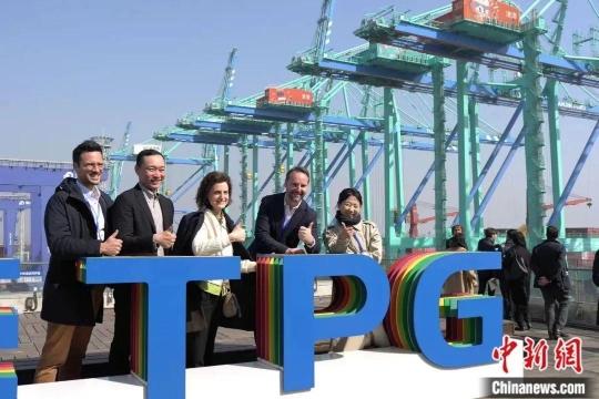 3月22日,中法两国60余名代表参观天津港智慧零碳码头。中新社记者 佟郁 摄