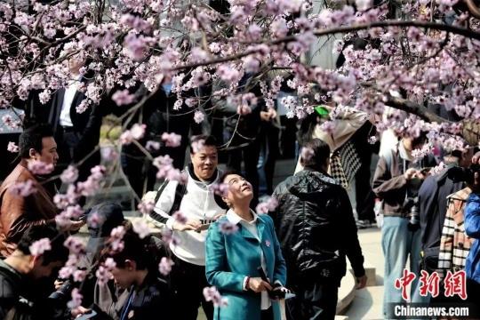 3月15日,民众在天津北运河畔的桃花堤,赏桃花美景,品味运河文化。中新社记者 佟郁 摄