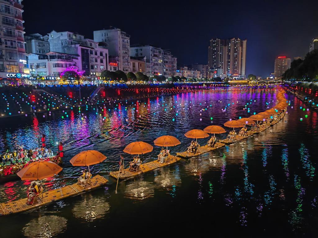 湖北宣恩,地处鄂西。一条河、两条街,县城的核心区,是一个开放式的4A级景区。每当夜幕降临,这里就进入了一天中最热闹的时段。波光粼粼的河面上,两条“龙船”满载游客,蜿蜒行进,街市上人头攒动,香味扑面,一幅宛如“清明上河图”的景象令人赞叹。