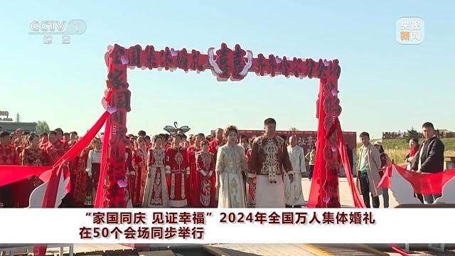 全国妇联、国家民委、民政部、农业农村部、中央军委政治工作部,22日联合举办“家国同庆 见证幸福”2024年全国万人集体婚礼。婚礼在北京主会场、各省区市和新疆生产建设兵团49个分会场同步进行,来自全国各省区市和港澳台地区的5105对新人身着传统服饰,参与这场规模盛大的中式集体婚礼。