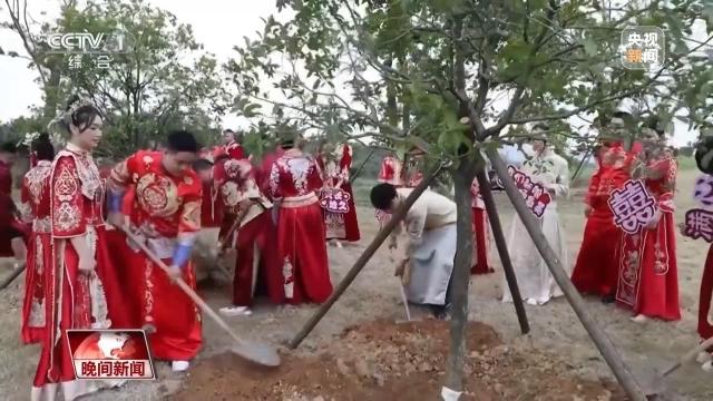 在江西吉安,九江等地,新人们在集体婚礼后,共同种下象征吉祥富贵的桂花树,表达美好愿景。