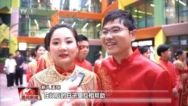 在北京主会场,75对新人身着中式礼服,与各地分会场进行互动连线,万名新人共同许下“相守一生、白头偕老”的幸福承诺,发出婚事新办简办、反对高价彩礼的倡议。
