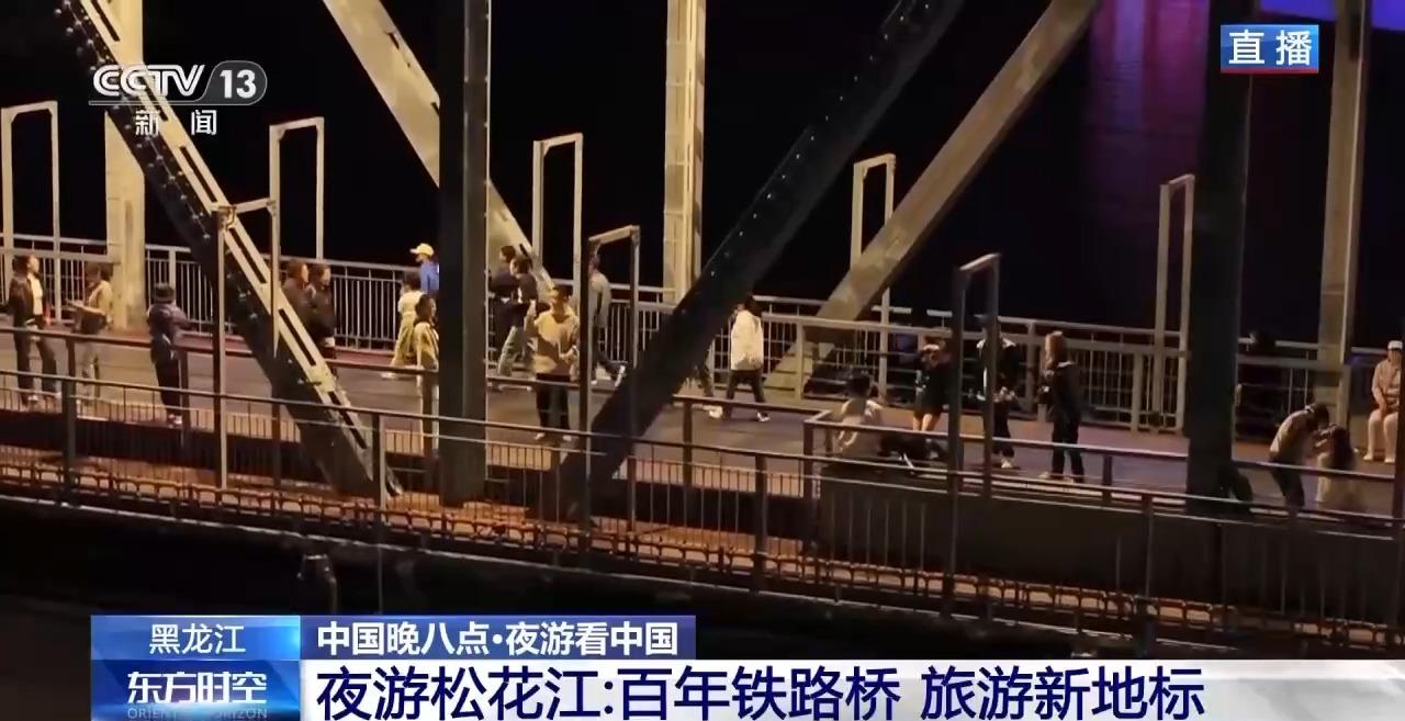 老江桥作为中东铁路建筑群不可移动的文物保留下来,成为开放式公园,在铁路桥上还设计了两段玻璃栈道,透过玻璃地面,可以直接看到铁路桥钢架结构与松花江江面。这座百年铁路桥如今也成了“网红桥”,很多游客前来打卡。马上国庆节就要到了,到时候这上面会挂满国旗。