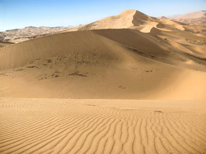 必鲁图峰是巴丹吉林沙漠最高的沙山,海拔1611.009m,相对高度达460m,号称“沙漠珠穆朗玛”,也是世界上最高的沙山,分布于巴丹吉林沙漠中最高大的沙山群之中。