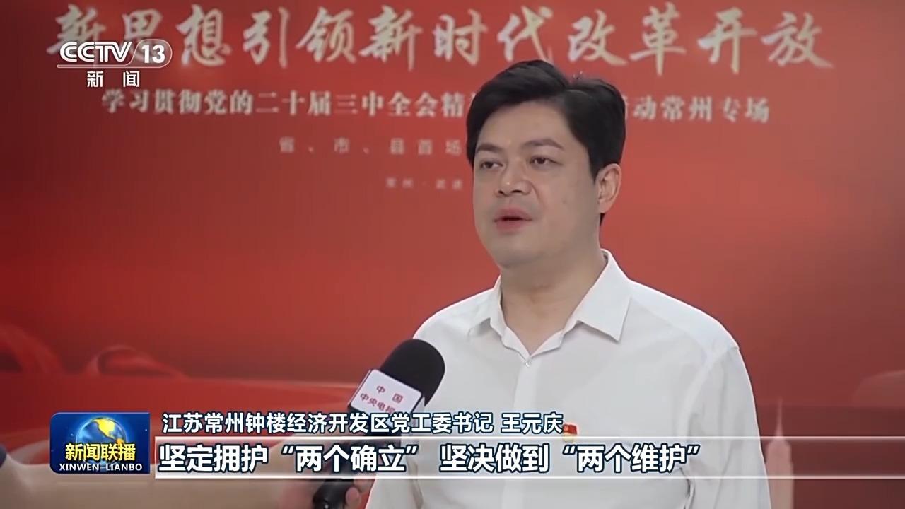 江苏常州钟楼经济开发区党工委书记 王元庆:我们坚决贯彻好、落实好党的二十届三中全会精神,坚定拥护“两个确立”,坚决做到“两个维护”,扎实推动科技创新和产业创新深度融合,将未来产业作为关键增量,让发展成果惠及更多人民。