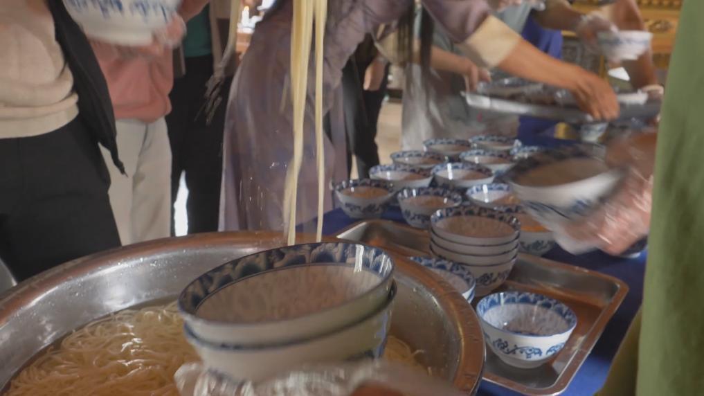 游客的手机、相机镜头严阵以待,小碗横排竖列摆满一桌,七八位厨娘麻利捞面,最终在每个碗中盛下三五根面、一口汤。