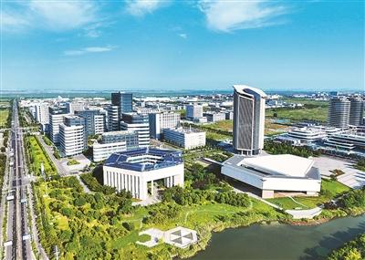 江苏自贸试验区连云港片区打造“中华药港”项目,聚集医药研发生产及关联配套企业260余家,形成了新型抗肿瘤药物、新型肝病药物、新型中成药等六大研发生产基地。图为“中华药港”一期项目。王健民摄(人民视觉)